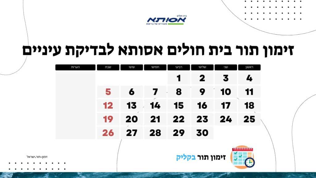 שאלה: מהם השעות שבהן ניתן לקבוע תור לבדיקת עיניים בבית חולים אסותא?