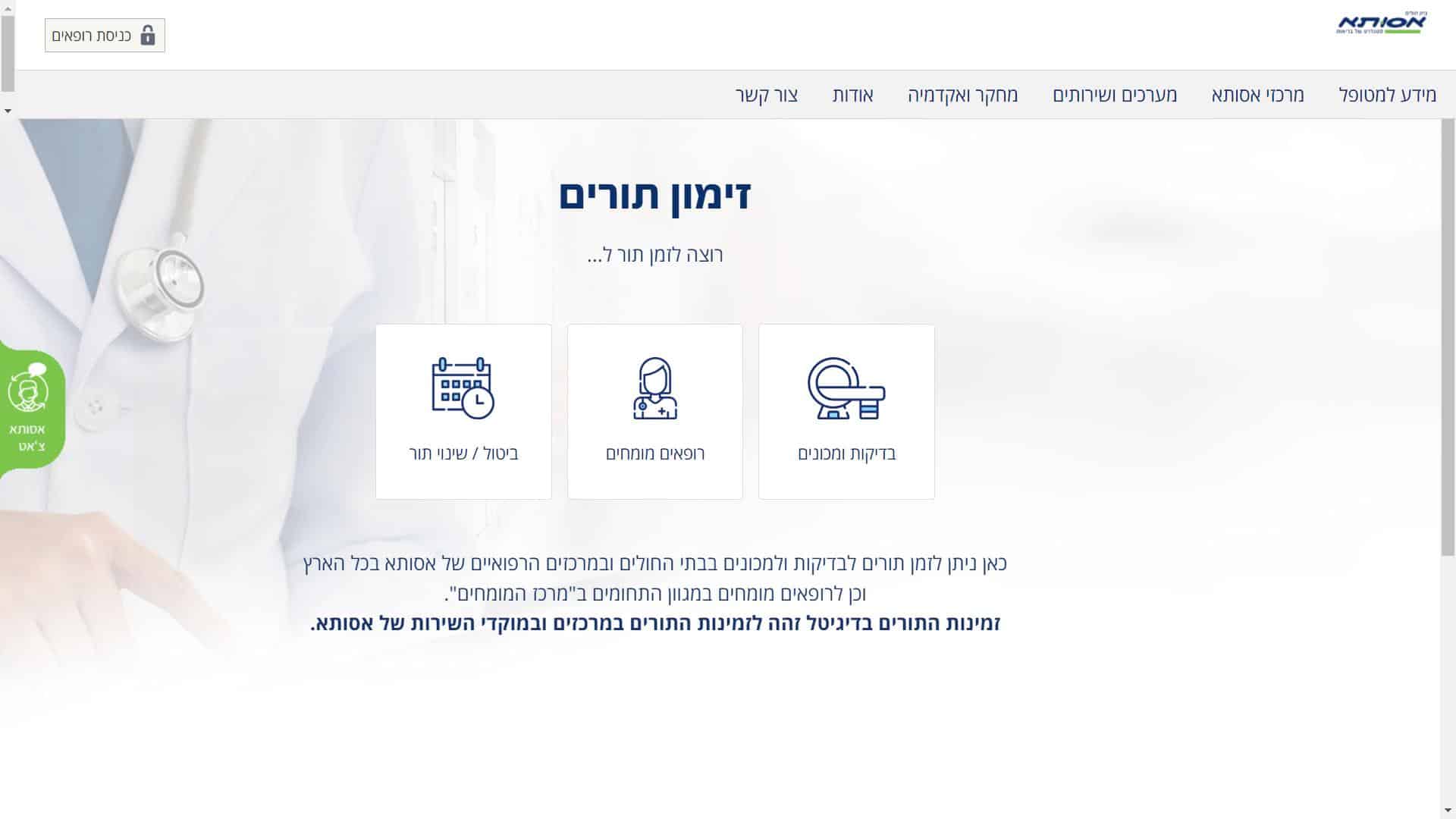 הכנסת פרטים למערכת הזמנת תורים באתר הבית חולים אסותא