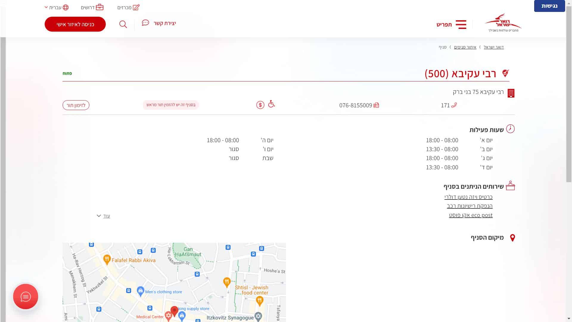דואר ישראל סניף בני ברק שעות פתיחה לקבלת תורים