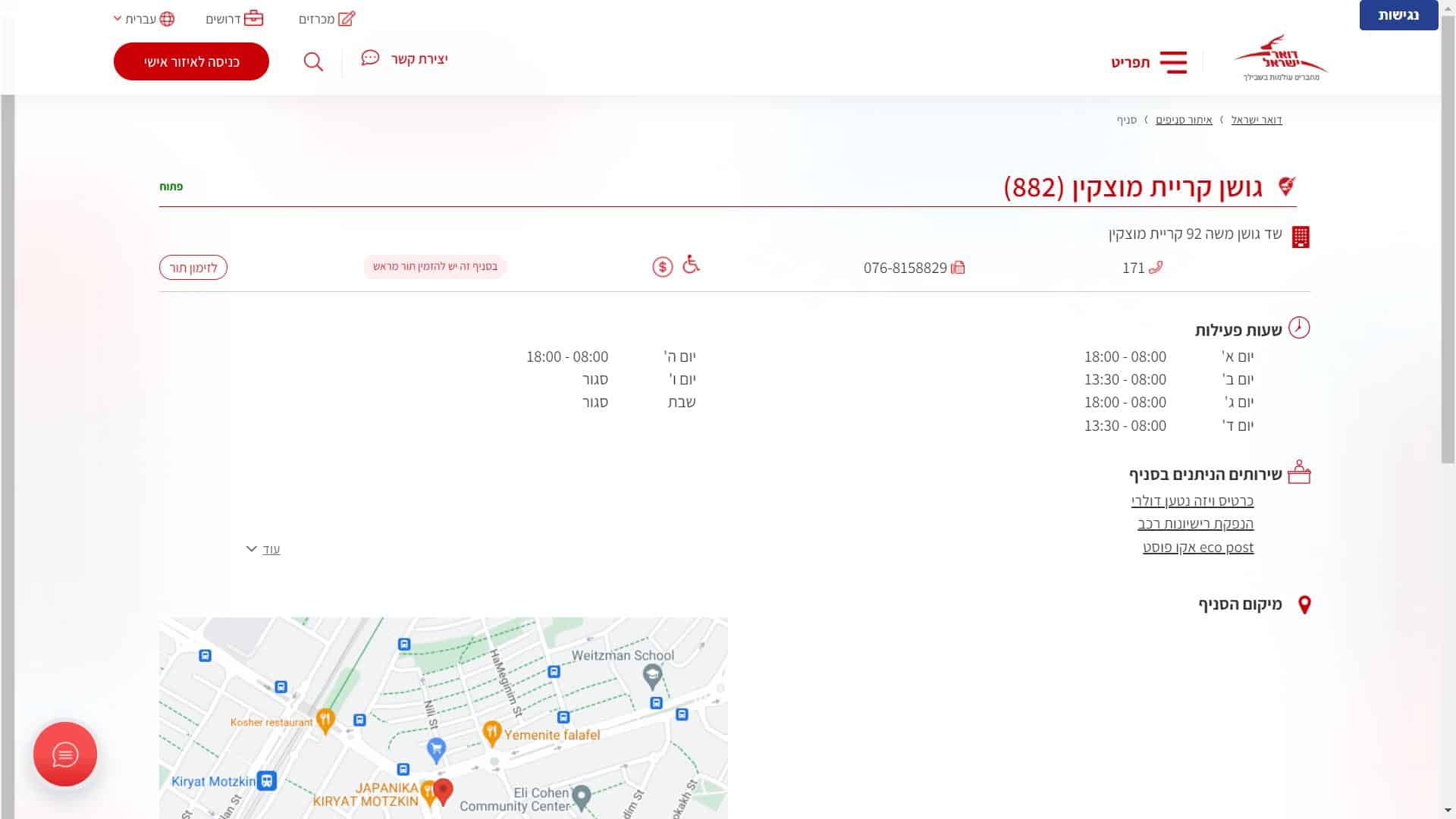 דואר ישראל סניף גושן שעות פתיחה לקבלת תורים