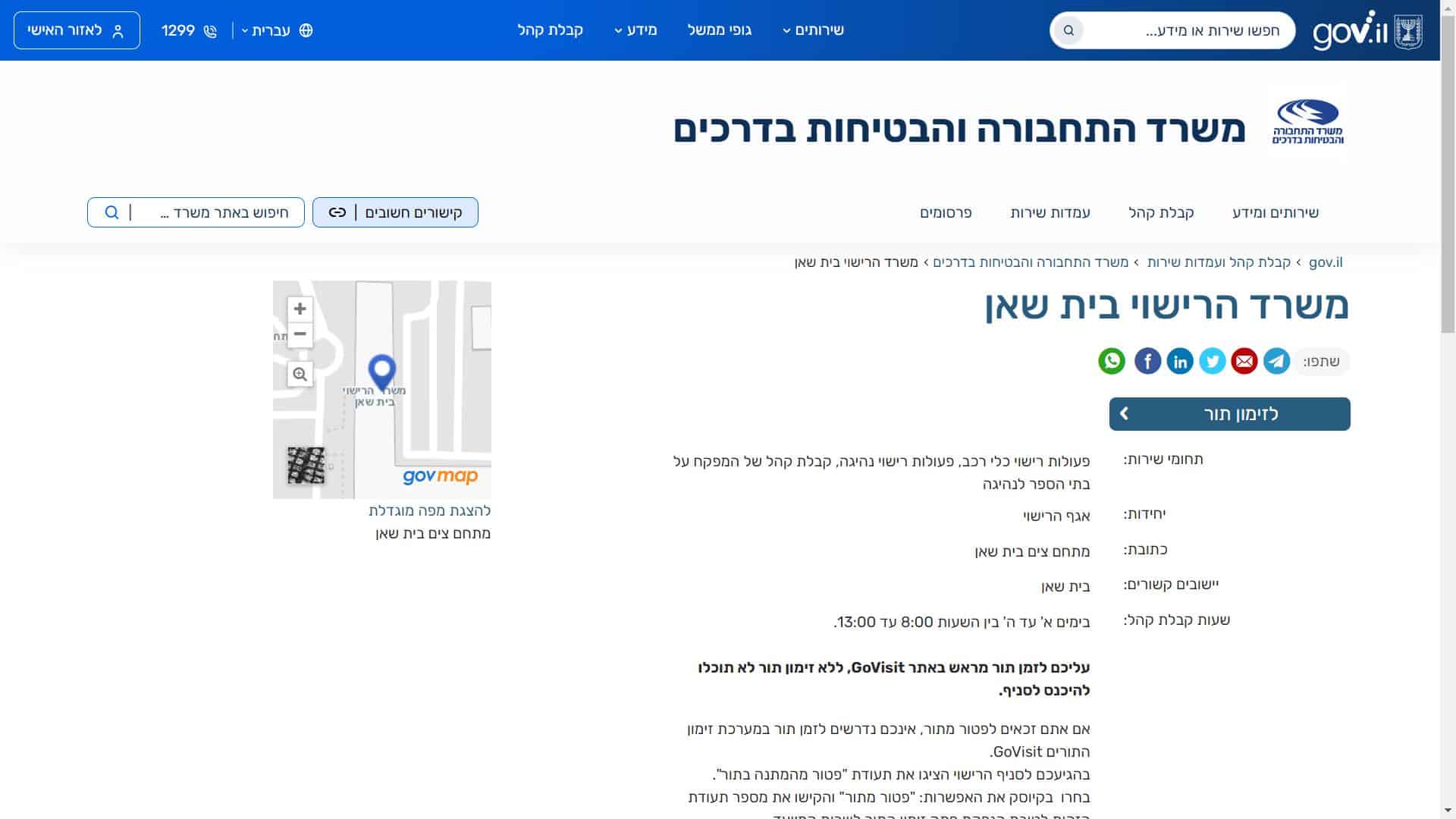 תוכל לקבוע תור למשרד הרישוי בית שאן דרך האתר של משרד הפנים או באמצעות הטלפון.