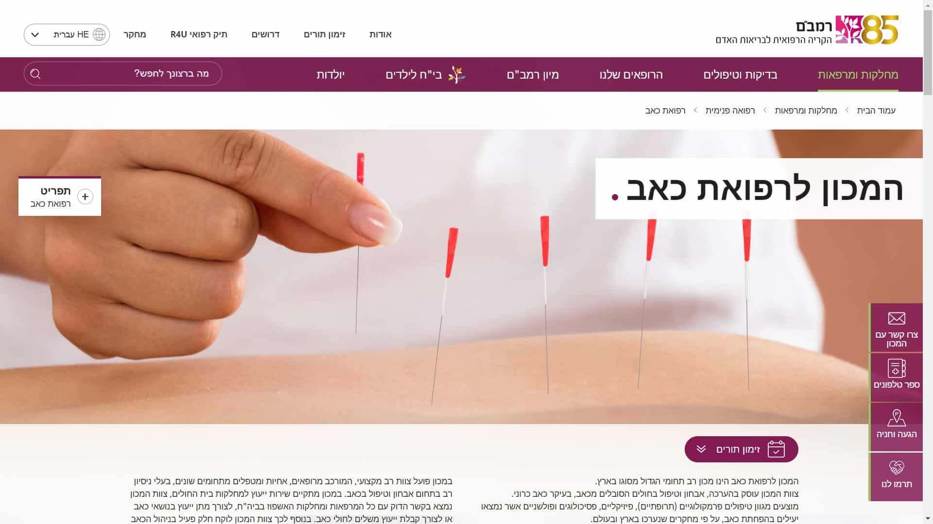 1. איך אני יכול לקבוע תור במרפאת כאב בבית חולים רמב"ם?
