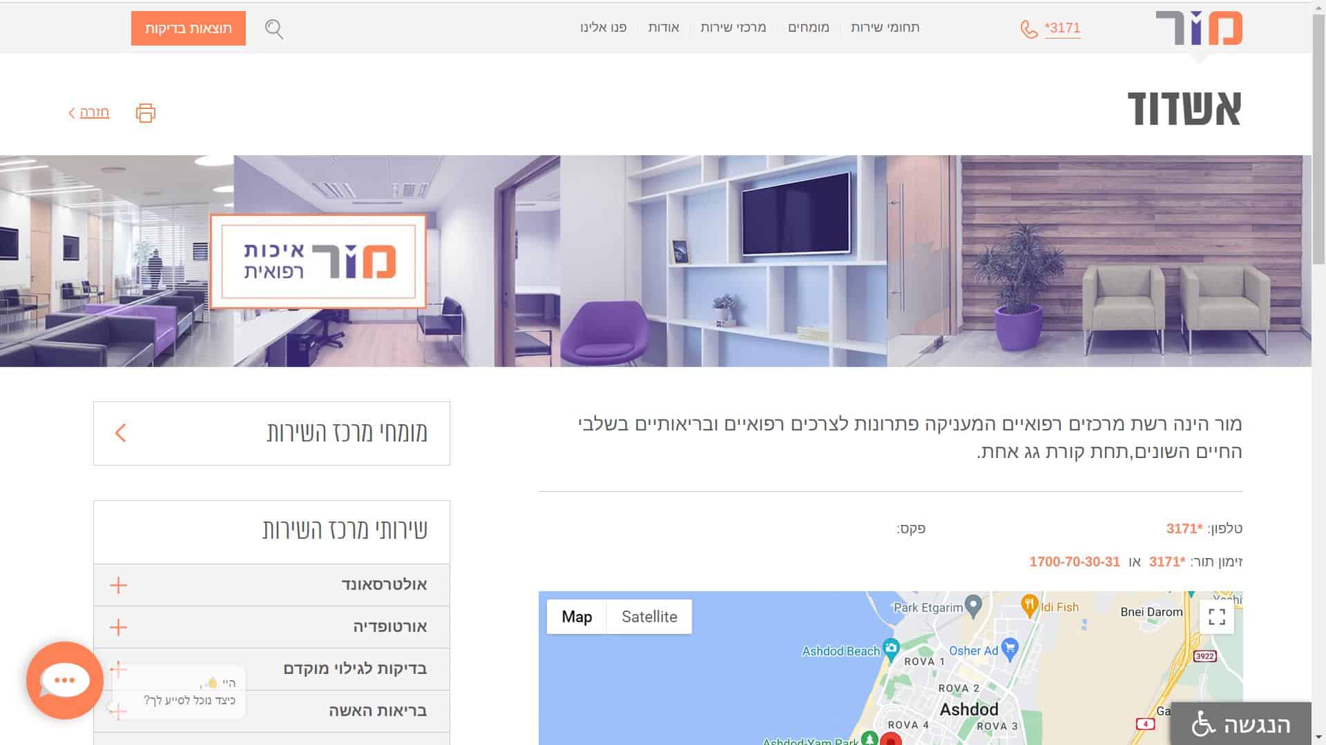 - חפשו את המספר הטלפוני של מכון מור בסניף אשדוד. ניתן למצוא את המספר הזה באינטרנט או להתקשר ישירות למספר *3171.