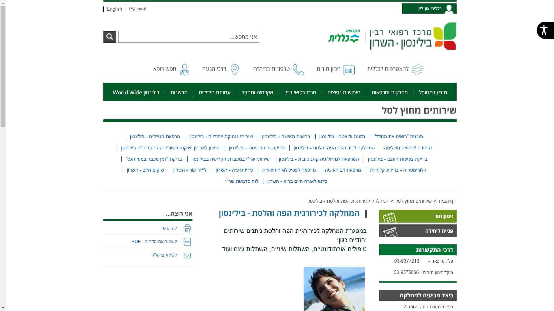 תוכל לקבוע תור בית חולים בילינסון לבדיקת פה ולסת דרך האתר של הבית חולים או באמצעות התקשורת הטלפונית.