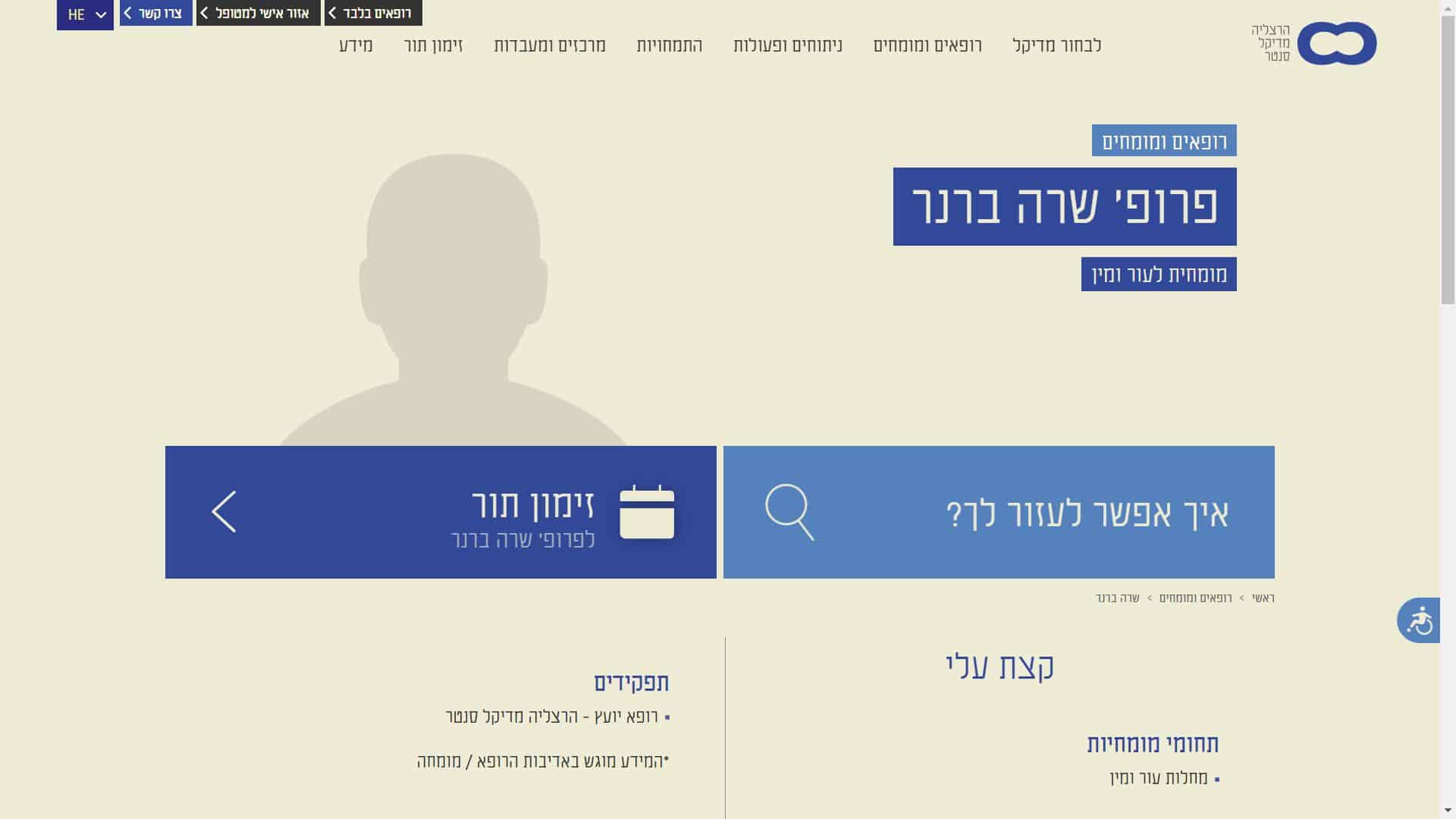פרופסור שרה ברנר מומחית לעור ומין צילום מסך זימון תור