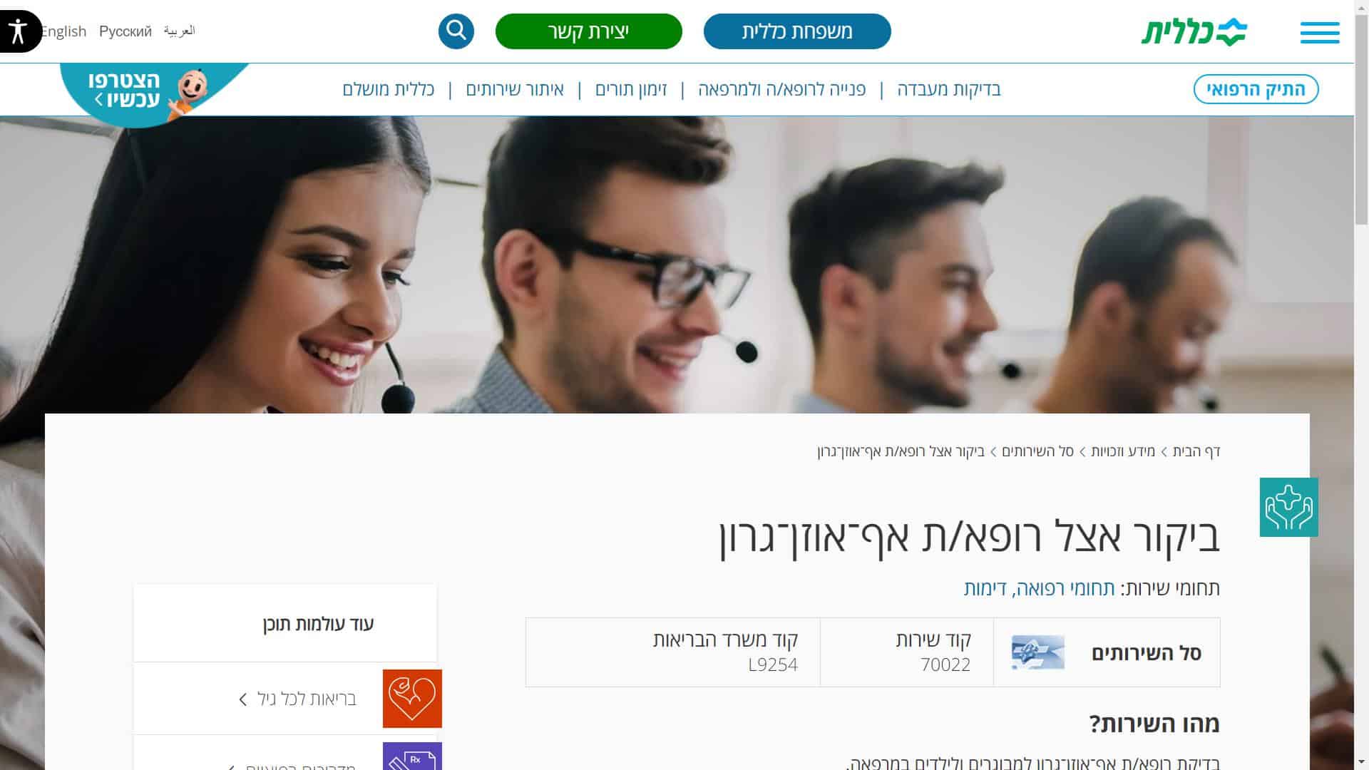 קופת חולים כללית רופא אף אוזן גרון שעות פתיחה לקבלת תורים