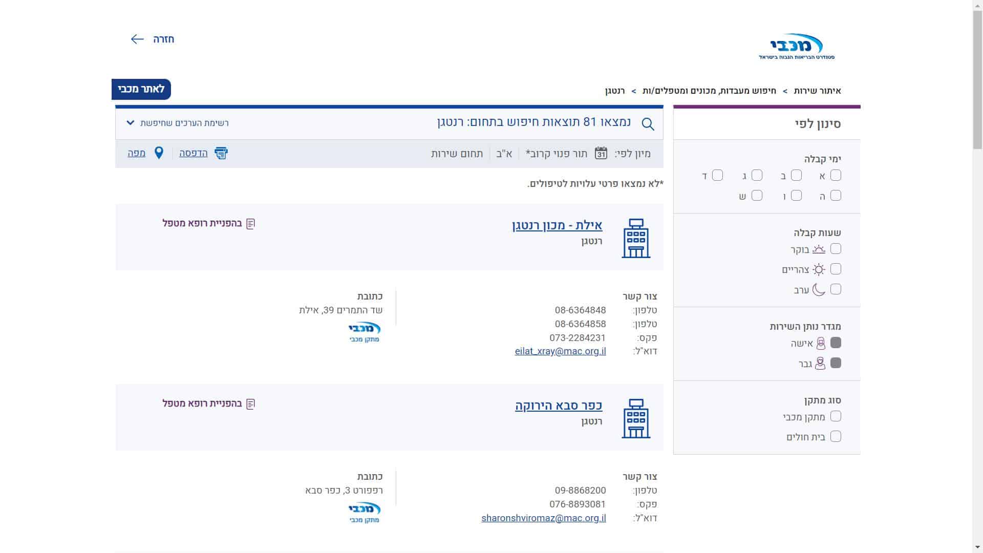 קופת חולים מכבי בדיקת רנטגן שעות פתיחה לקבלת תורים