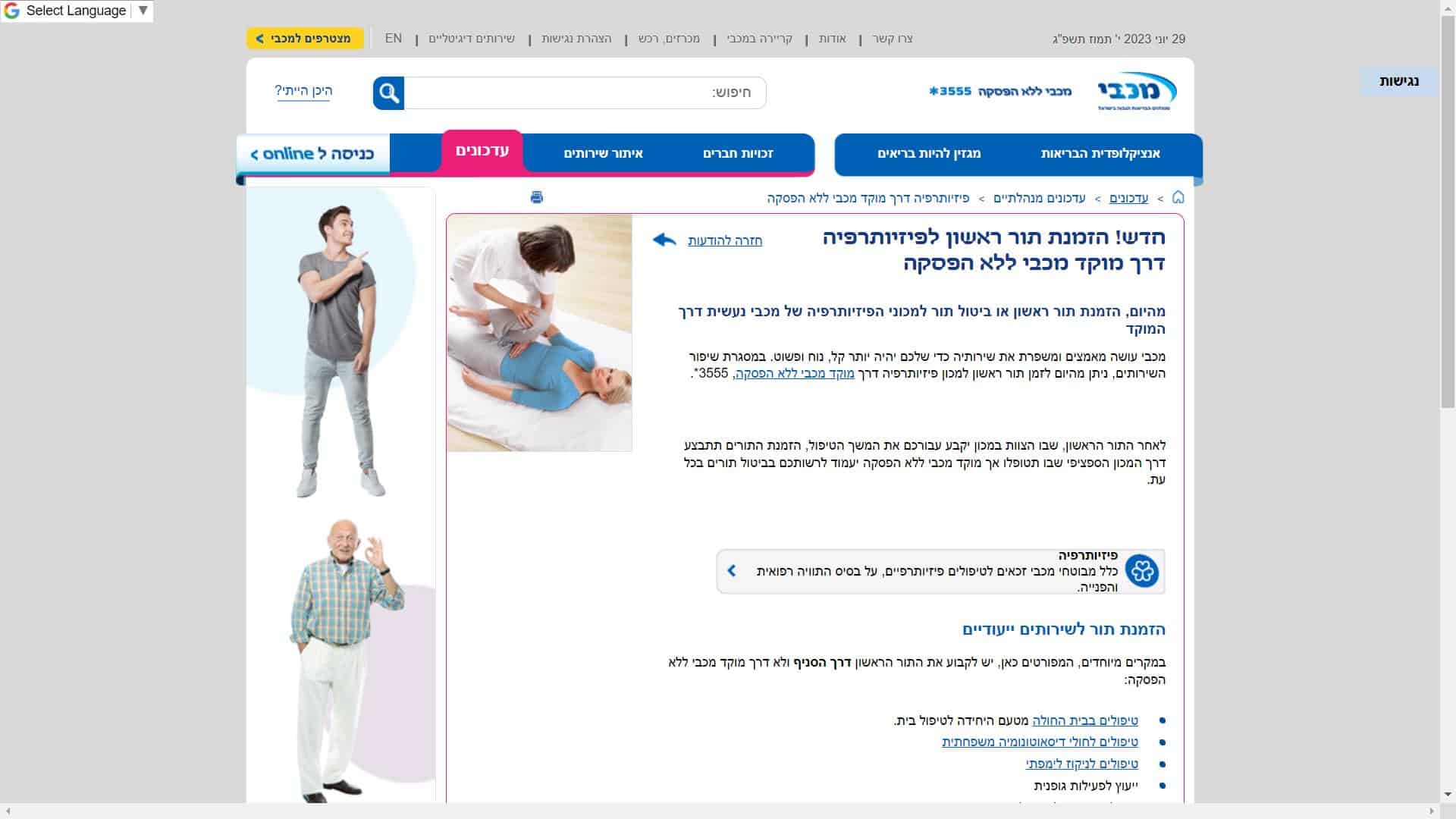 כיצד לקבוע תור לטיפול פיזיותרפיה דרך מוקד טלפוני קופת חולים מכבי?