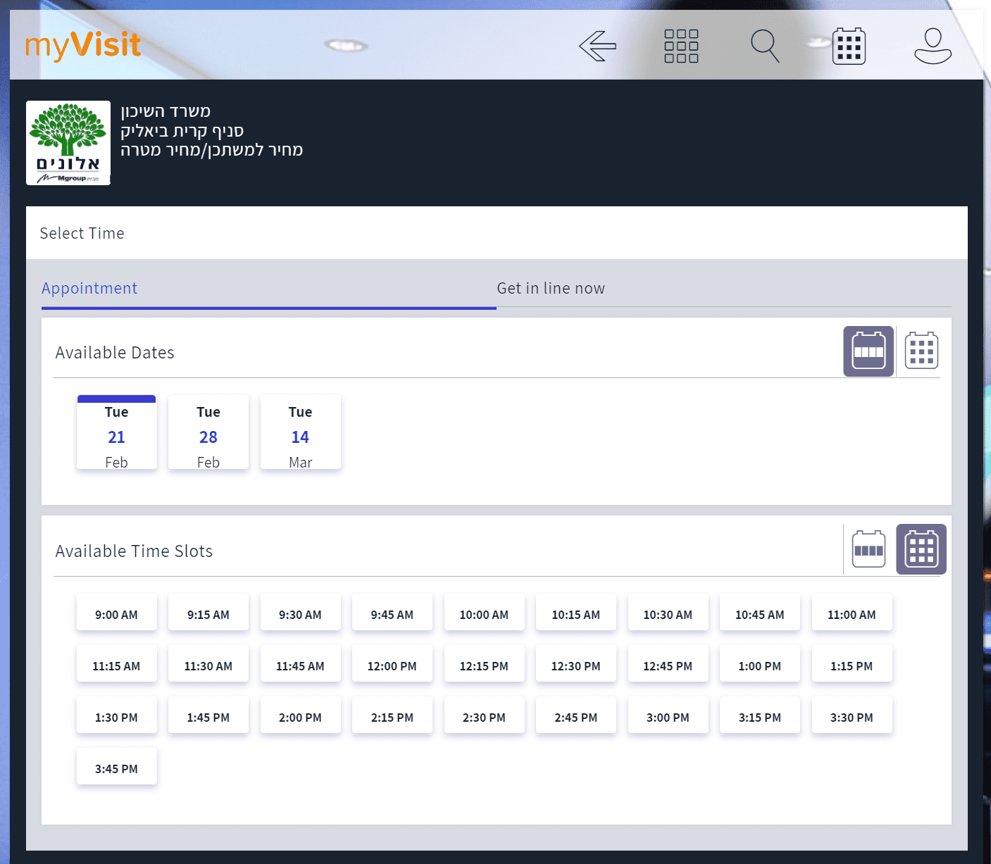 - בשלב האחרון תצטרכו לבחור את היום והשעה של התור ולאשר את התור – מזל טוב, קבעתם תור לחברת אלונים.